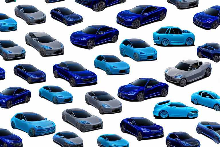 Several cars in various shades of blue