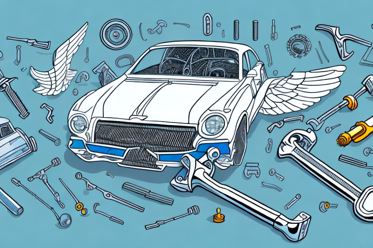 A car with wings being disassembled